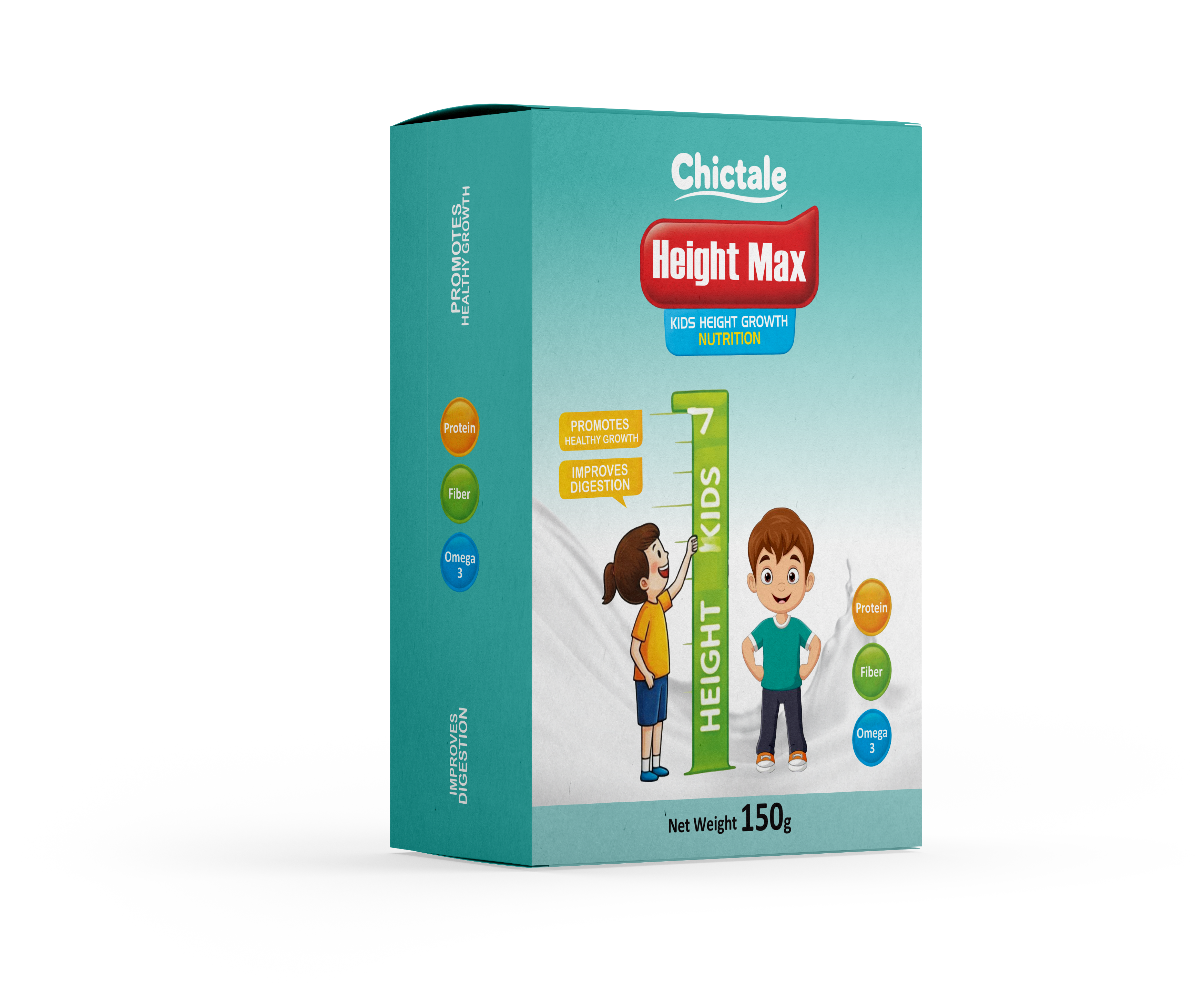 Chictale Height Max is a natural height-supporting formula specially crafted for growing kids aged 4 to 16 years. Made from a wholesome blend of Fennel Seeds, Cocoa Powder, Barley Porridge Powder, Ashwagandha Powder, Roasted & Ground Flaxseeds, and Powdered Mishri, this supplement provides essential nutrients that help support healthy growth, strength, and daily nourishment.